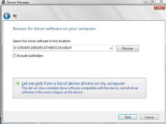 手动从硬件列表中选择设备驱动程序,虽然这种方法不能保证你所选择的驱动程序与你的硬件最匹配,但已经到了这个地步了,也就死马当活马医了。