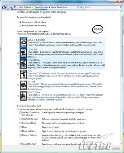 对于游戏玩家来说,Vista提供的很好的特性之一就是整合了游戏的等级,通过这个功能就能够根据游戏内容和等级限制哪些游戏是小孩能够玩的。以下是Vista中的有着等级信息的游戏清单: