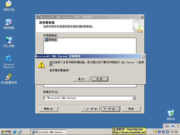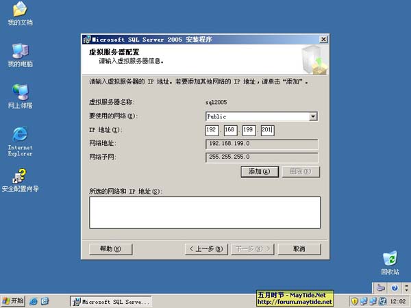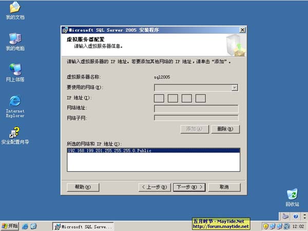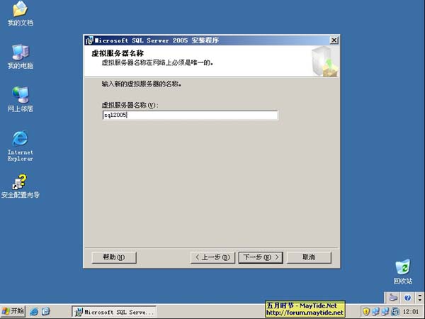 11、虚拟服务器名称配置中,为此群集命名为sql2005