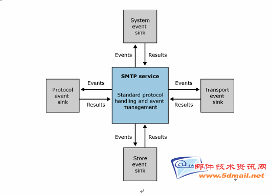 这些存储事件允许其Event Sink(通常在数据库驱动中被实现)去获取在数据库或者文件系统中的邮件内容。传输子系统使用此Event Sink来完成邮件的本地投递工作。(邮件最终目的地就是当前SMTP服务器时,SMTP执行本地投递,把信件保存到数据库中)