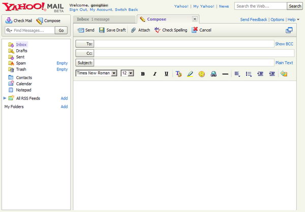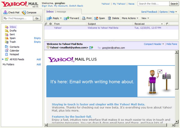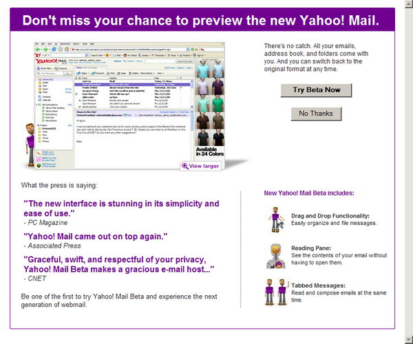 登录进去,出现一个界面提示你是不是要尝试测试版的Yahoo Mail