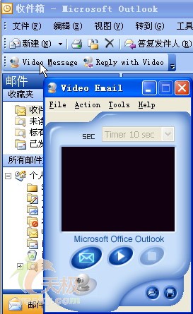 随着邮箱越来越大,给好友发一封视频邮件已经不在话下。这不,Outlook就要发送视频邮件了。要在Outlook 2003中发送视频邮件,需要安装其视频电子邮件插件Video Mail。有了它,就可以把摄像头拍摄的视频内容,或已有的视频文件,作为邮件发给朋友了。