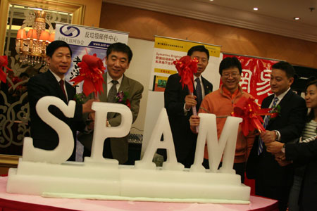 大家知道,互联网的普及和发展给人们生活和工作带来了诸多方便,但同时也有通过电子邮件对商品进行不法宣传的有害信息,不仅损害了消费者的合法权益,浪费了网民的时间,占用了大量的网络资源,而且严重地扰乱了网络市场经济秩序,造成了巨大的经济损失。对此互联网企业每年都要投入大量的人力、物力和资金进行治理,消费者怨声载道,垃圾邮件已经成为全球性的公害,“清除网络垃圾,保护消费者权益”既是互联网协会一项重要的工作内容,也是整顿互联网市场经济秩序,在政府有关部门的大力支持下,包括举报有害信息在内的反垃圾邮件治理综合平台的建设启动仪式现在开始,在启动仪式开始之前,我们那边设计了一个SPAM“垃圾邮件坚冰”,一会儿会由政府主管部门、行业代表和网民代表一起把这个“坚冰”砸烂。首先请我们著名网络企业的代表到台上向大家讲一句话。