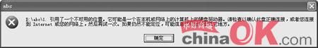 我们来了解一下这个加密的具体原理,在Windows中“\”符号代表的是路径分隔符,用于区分父文件夹与子文件夹。所以Windows无法打开名称中含有“\”的文件或文件夹,双击这类文件或文件夹时系统会提示错误,如图3所示。而这类文件夹在命令行模式下是可以访问的。我们在abc文件夹中建立这么一个无法打开的文件夹,当需要加密时,用加密.bat将abc文件夹中的内容复制到这个特殊文件夹中。反之,将其复制出来则完成解密工作。如果将命令:D:\abc>md 1..\,改为:D:\abc>md 1..\a,则1..\文件夹将不可见。