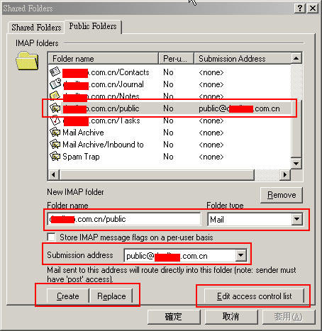看到圖片下面的“Create”“Replace”兩個按鈕了吧! 如果是新建公用資料夾,請按“Create”,如果是修改以前存在的公用資料夾,請按“Replace”。