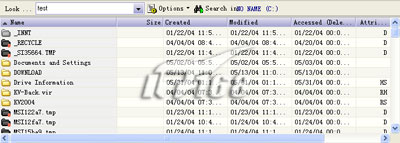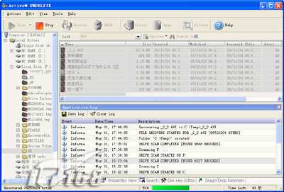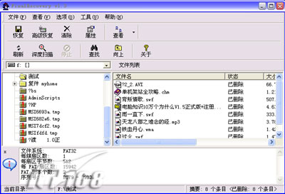 在简单扫描方式下,查找出了所有文件,但除了AVI格式的文件,其它类型文件均没有正确标识出扩展名,但可在恢复后修改扩展名。