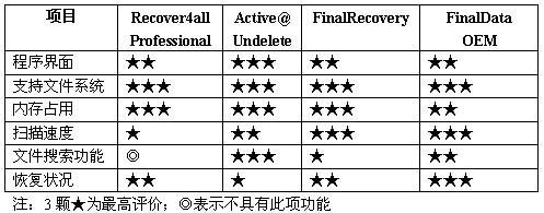 对用户而言,毕竟软件的数据恢复能力才是最重要的横量标准。从这方面来说,FinalData OEM的恢复效果最佳,Recover4all Professional 与FinalRecovery各有优劣,而Active@ Undelete则表现得差强人意。