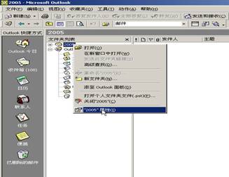 三、解决办法:建立新的文件夹用来接收邮件(例如:2005),对应的文件夹文件为(2005.pst),指定新接收和发送的邮件都存储到此文件夹中,操作过程如下: