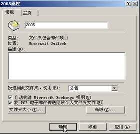 这样设置后,新接收和发送的邮件就都存储到2005文件夹中了,这样就可以解决由于“个人文件夹”文件达到2G时无法收发邮件的问题了。