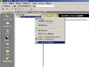 4.选择“文件夹列表”下面的“Outlook今日-[个人文件夹]”,然后右击鼠标,选择“个人文件夹属性”