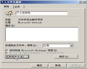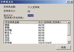 5.察看“将POP电子邮件传送给该个人文件夹文件”是否为灰色选中项,如果是则说明 outlook 2000所接收和发送的电子邮件都存储在此文件夹中,我们要察看的就是这个文件夹的大小是否达到2G。如果不是,请重新到“文件夹列表”中选择“将POP电子邮件传送给该个人文件夹文件”为灰色选中项的文件夹,察看该文件夹大小是否达到2G。我们这里以“个人文件夹”为例进行说明,供您参考,您应该以自己实际使用的文件夹为准。接下来,请点击“文件夹大小”按钮。