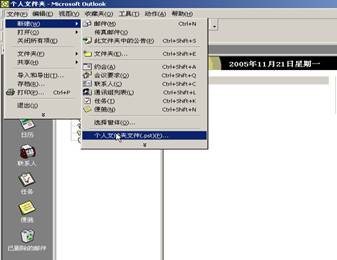 1.在“工具”菜单上,点击“文件”—〉“新建”—〉“个人文件夹文件”