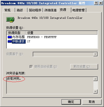 现在PCI网卡均支持即插即用,在安装驱动时会自动分配IRQ(中断)资源。如果预定的IRQ资源被声卡、Modem、显卡等设备占用,而系统又不能给网卡重新指定另外的IRQ资源的话,就会发生设备冲突,导致设备不能使用的问题。如Realtek RT8029 PCI Ethernet网卡就容易和显示卡发生冲突(均使用IRQ10)。解决方法很简单,我们可以查找一下主板说明书中对PCI插槽优先级部分的说明,将冲突的设备更换到优先级更高的PCI插槽上(一般来说,越靠近AGP插槽的PCI插槽,优先级别就越高),并进行调换,直到两冲突设备不再冲突为止。这种方法很简单,但相对来说就会比较繁复。除此之外,我们还可以在网卡的设备属性里面,手动为网卡重新分配IRQ值: