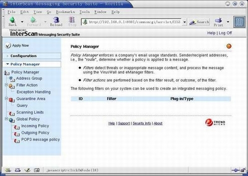 点击“Policy Manager”选项,下面就可以制定自己的邮件服务器邮件管理策略,见图4。