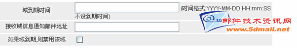 这个功能对于邮件运营商比较有用,到期的域会自动发送一份邮件给管理员,同时可以由系统自动暂停域的使用。