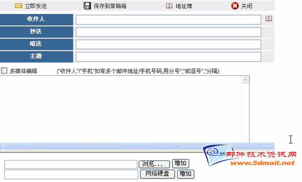 b)发送邮件时,可以直接从网络硬盘选择附件,尤其是在发送大附件邮件时可以减少上传的等待时间。