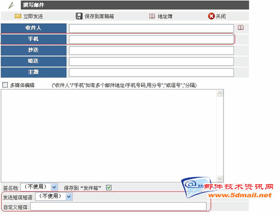 发送邮件是可以编辑一个短信短语,可以同时给多个手机号码发信。