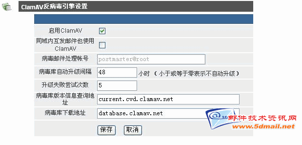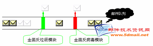 邮件系统一般采用内嵌或者外挂的杀毒引擎的方式杀毒,内嵌方式杀毒效率比较高,金笛邮件采用内嵌ClamAV杀毒引擎。使用该杀毒软件的好处是升级比较快,病毒库可以永久免费升级,为邮件系统首先杀毒软件。