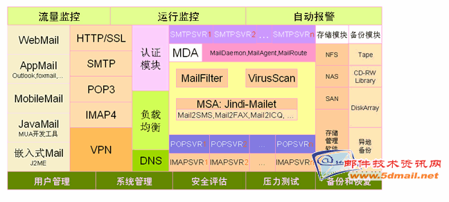 金笛邮件系统在设计之初,就充分考虑了造成邮件系统不稳定的各种因素,在4个层面上,强化邮件系统稳定性设计: