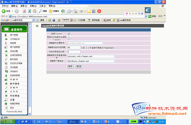 3. 病毒库、垃圾邮件规则库自动定时下载。