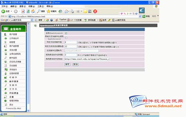 金笛邮件将很多功能做成自动化、智能化。比如垃圾邮件规则库、病毒库的自动定时升级,就极大了降低管理员的维护工作量。升级频率、升级失败重试次数管理员可以根据实际需要调整。金笛邮件系统垃圾邮件训练功能、垃圾邮件、病毒邮件、异常邮件自动分拣功能,也极大方便了管理员,使用户可以参与改进垃圾邮件过滤效果。疑似垃圾邮件的定义、垃圾邮件阀门调整也使邮件系统更加人性化,保证重要邮件永不丢失。