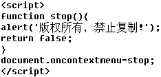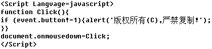 这样在浏览网页时除单击鼠标左键外,其他任何形式的鼠标点击或组合点击,都将出现“版权所有(C),严禁复制!”的提示框。