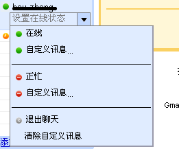 在通讯录的下面还会出现自己申请Gmail时的名字信息,在这里可以设置一下在线状态。如图三所示:
