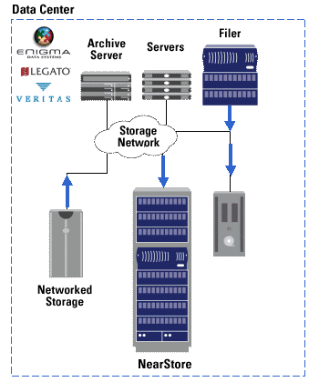 数据的存档在许多组织中变得越来越重要,这些组织需要确保将数据的一致副本作为业务或应用程序状态的长期记录来进行维护。与关键应用程序恢复相对,存档通常用于审计、分析和检索不经常访问的数据。Nearline 存储和 NearStore 是这一应用的理想工具,因为文件一旦存在,通常会将其从主存储系统中删除,并且可以在需要时快速地联机检索。
