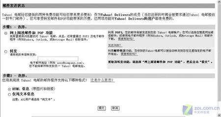 第二步:将下列地址复制到浏览器的地址栏:http://rd.yahoo.com/mail_us/options/?edit.my.yahoo.com/config/set_popfwd?src=ym&.done=http://us.f93.mail.yahoo.co。在打开的“邮件发送状态”页面中(如图),选择“网上阅读邮件和POP功能”并单击“提交”按钮。在新打开的页面中,你将会看到关于Yahoo邮箱POP功能的相关详细参数信息。