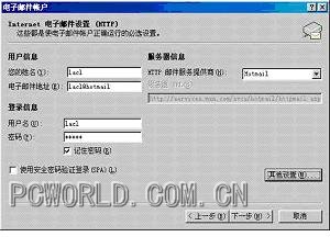在Outlook XP中点击“工具/电子邮件账户”,选择“查看或更改现有电子邮件账户”,在电子邮件账户窗口中按“添加”按钮,然后选择“HTTP”连接到HTTP电子邮件服务器,在弹出的窗口中设置用户名、密码、HTTP服务器地址等(见图1)。