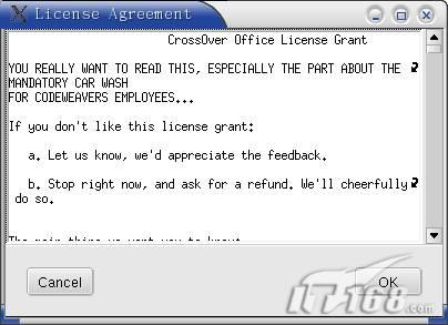 2、系统会显示一个“CrossOver Office License Grant”见图-1。
