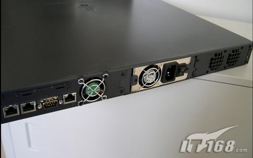 我们再来看后方面板(如图3),在这里可以清晰的看到两个网卡RJ45接口。