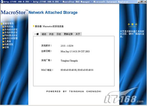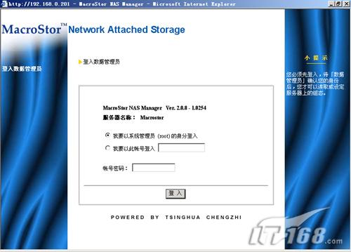 由于笔者公司添置的是清华诚志公司出品的macrostor nas产品,所以本文将对该产品的安装配置进行全面介绍,其他厂商的NAS产品安装配置方法基本类似,读者们可以自行举一反三去操作。