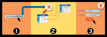 2. 在用户机器上的恶意软件把用户重定向到某个钓鱼网站。
