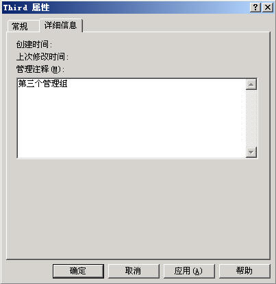 这里,我们把第三个管理组名称设为“Third”,上面还有一个“详细信息”标签,这里信息可选:
