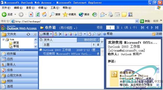 这个画面大家肯定是非常的熟悉了,和我们的Microsoft Office Outlook 2003的介面是非常的类似的,而且同时还拥有Outlook 2003的大部份功能,比如我们可以点一下“新建”: