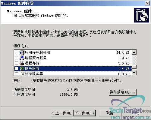 再点“添加/删除Windows组件”,并找到“证书服务”: