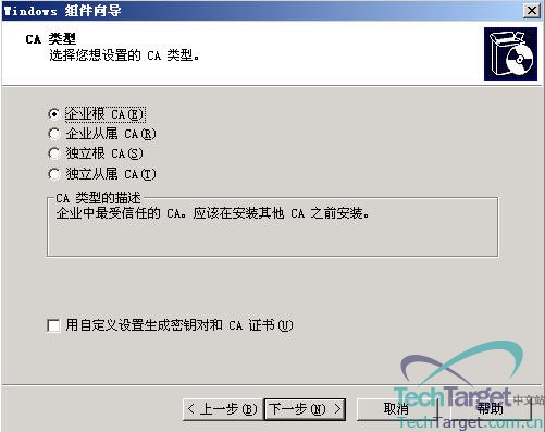 上面那个警告窗口的意思是一旦安装证书服务后,该计算机名和成员身份将不能进行更改,否则会破坏原颁发的证书,这一点大家一定要注意的,当然在这里你也别无选择,你只能选“是”,除非是你不想安装证书服务: