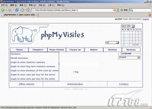 phpmyvisites的官方网站是:http://www.phpmyvisites.net/ 最新版本:2.1。