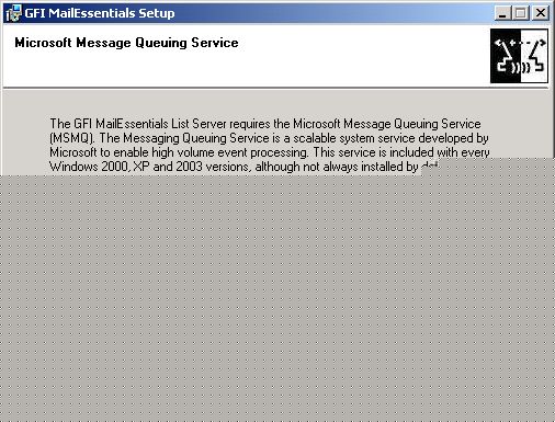 接下来的一个窗口要求安装微软消息队列服务(Microsoft Message Queuing Service)。只有用ME来管理list server(列表服务器),才需要安装它。在本文中,我们关注的是垃圾邮件过滤功能,所以我们在这里没有安装它。(如图12)