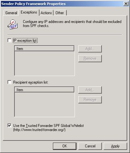 首先打开Sender Policy Framework(发件人策略架构)。这是在11.0版本中新出现的功能。它通过检查伪造发件人来确定垃圾邮件。Sender Policy Framework功能是一个团体防范垃圾邮件的工作。SPF要求发送者在SPF记录中公开自己的邮件服务器。当邮件到达时,GFI可以检查并确定发件人是否是伪造的。可以在Sender Policy Framework网站上找到更多关于SPF的信息。在配置好SPF后,ME将提示设置perimeter server参数,以帮助SPF工作。在这个示例中,我们已经在perimeter server(网关)上安装了GFI,所以不需要再进行设置。