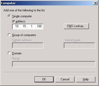 接下来我们配置这台SMTP服务器的属性。打开IIS控制台,然后展开该服务器节点。会出现默认SMTP虚拟服务。右击它,然后选择“属性”。在“常规”中,为该服务器配置一个IP地址。然后点击“访问”。在这里可以配置认证和连接参数。如果希望在网关和主服务器之间建立安全连接,可以在这里进行设置。在这里我们关心的是转发。为了不让网关成为一个开放的中继器,我们希望能指定哪个服务器或者哪些服务器可以通过该服务器转发邮件。点击转发,然后选择增加。你可以指定域中的IP地址或者服务器组。(图02)