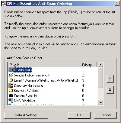 现在我们已经查看了所有的规则,可能想了解应该按照什么顺序处理一封电子邮件呢?可以在左边的区域,用鼠标右键点击“Anti-Spam”(反垃圾邮件),然后选择顺序模块属性。(见图29)。在这里我们可以为每个规则设置从最高优先级到最低优先级的顺序。