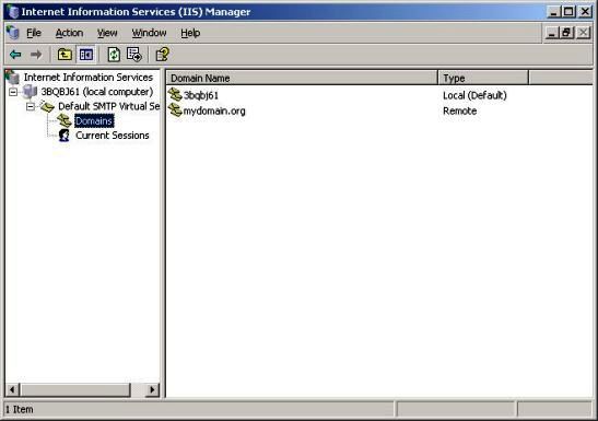 现在我们将配置SMTP服务器来把邮件转发到主邮件服务器。在默认SMTP服务器(Default SMTP server)下右击“Domains”(域)然后选择“New”(新建)。选择“remote option”(远程选项),然后点击“next”(下一步)。在下面的文本框中输入邮件域的名称。完成后,IIS管理器会把本地域和远程域排列出来(图04)。