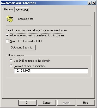 用鼠标右键点击新创建的域,然后选择属性。选择“allow incoming mail to be relayed to this domain”和“forward all mail to a smart host”单选按钮。在文本框中输入主服务器的名称,然后就可以接收邮件了。(见图05)