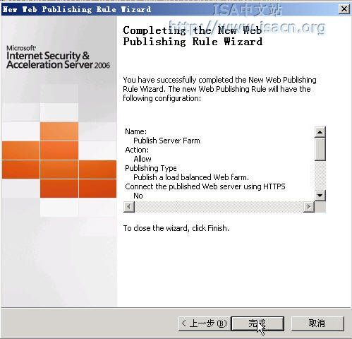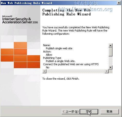 在正在完成新建Web发布规则向导页点击完成,此时Web发布规则就创建好了。