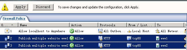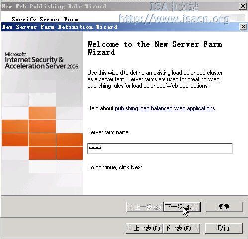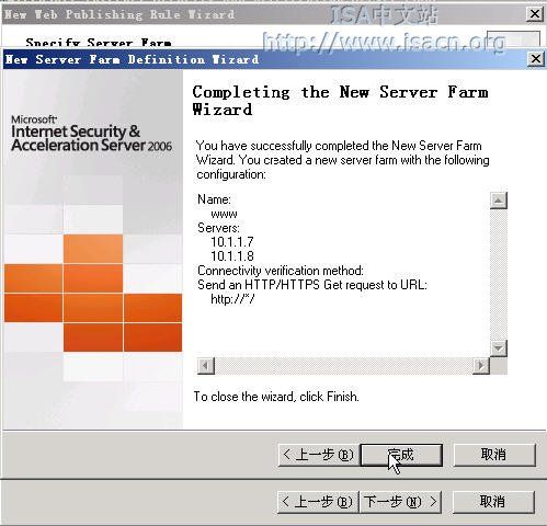 当发布服务器场以后,ISA Server 2006 将客户访问请求分布到服务器场中的不同Web服务器上,以实现负载均衡;