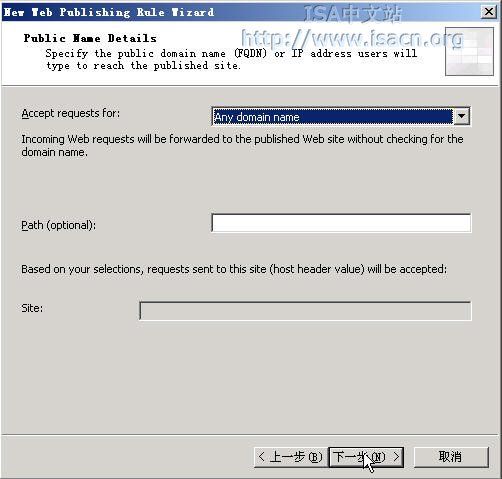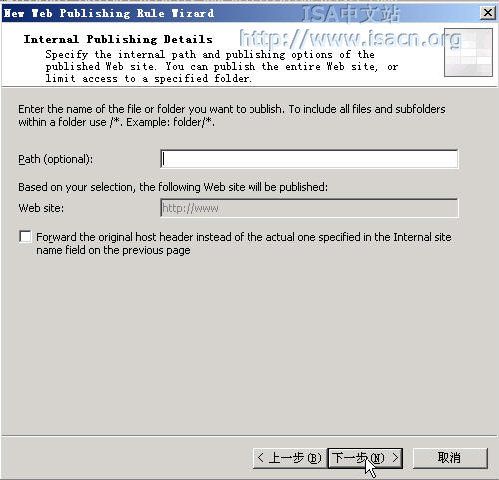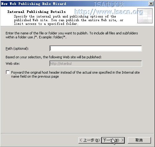 在内部发布细节第二页,输入发布的内部Web站点的路径,在此我发布全部路径,因此点击下一步;