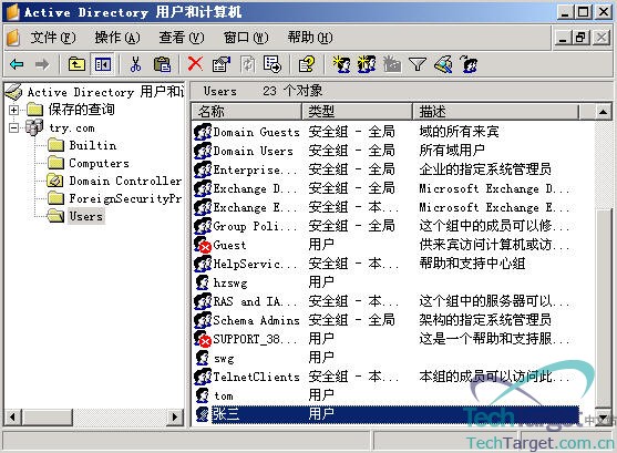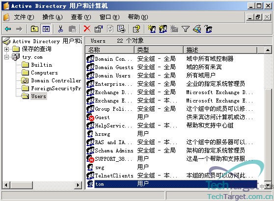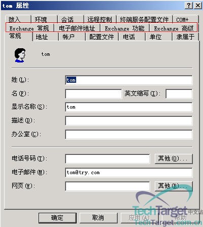 接下来,我们来看一下创建邮箱后,用户的属性发生了哪些变化,在“Tom”用户上双击。