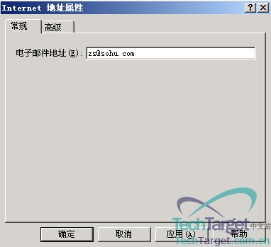 在“电子邮件地址”输入:zs@sohu.com,然后再点一下“高级”: